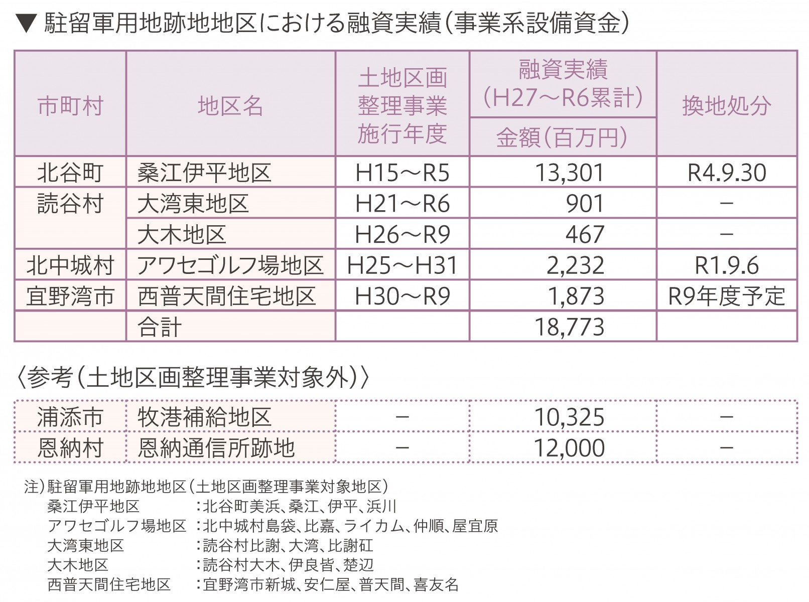 駐留軍用地跡地地区における融資実績