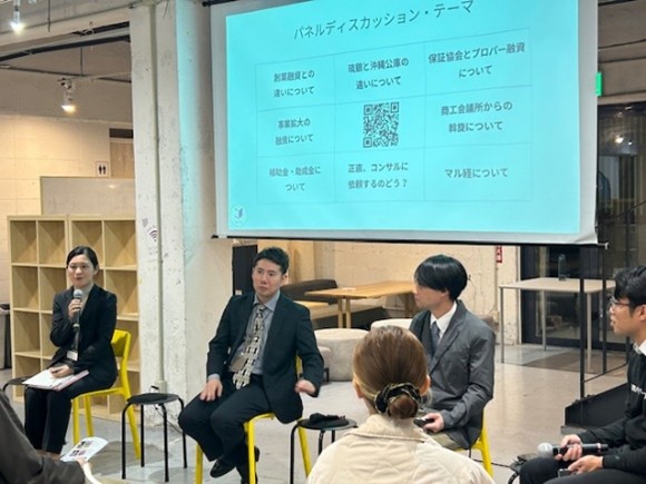同イベントは、創業2期目以降の事業者を対象に、当公庫と民間金融機関、商工会議所の各担当者が登壇し、各機関の概要や融資制度等を説明した後、Lagoon KOZAスタッフ進行の下、パネルディスカッションが行われました。イベントの後半は、今後の事業展開を踏まえた金融機関や商工会議所の活用方法等、参加者との活発な質疑応答が繰り広げられました。