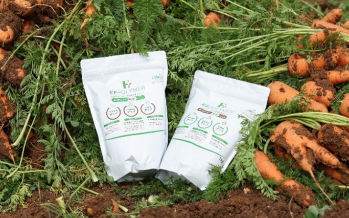 当社の製品である「EFポリマー(エコ・フレンドリー・ポリマー)」は、従来廃棄されていた作物残渣(オレンジやバナナの皮)を原料とし、約1年かけて完全に土に還る完全生分解性を有しています。